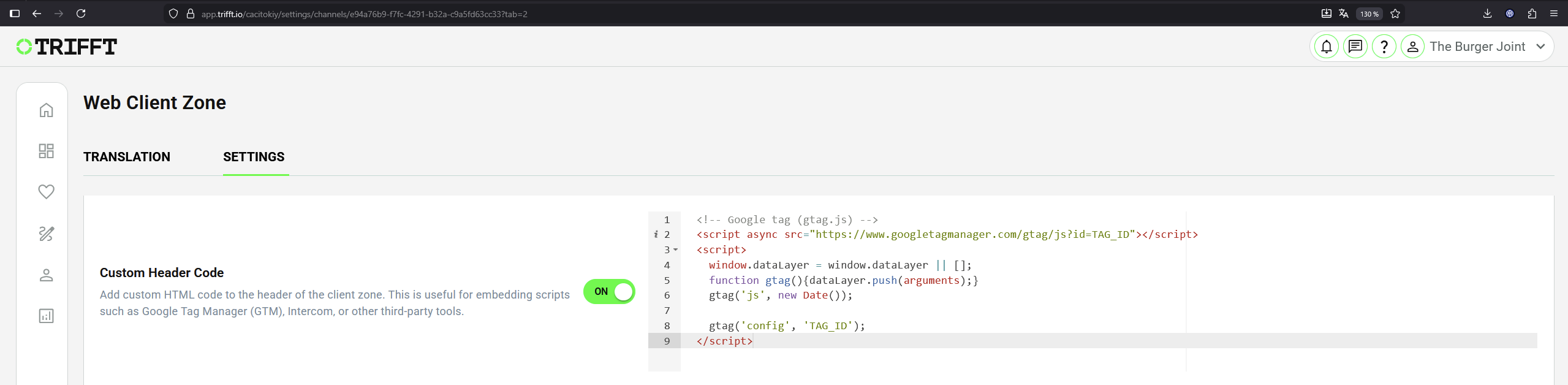 Step 3 — Add GTM to Trifft Client Zone (Custom Header Code)